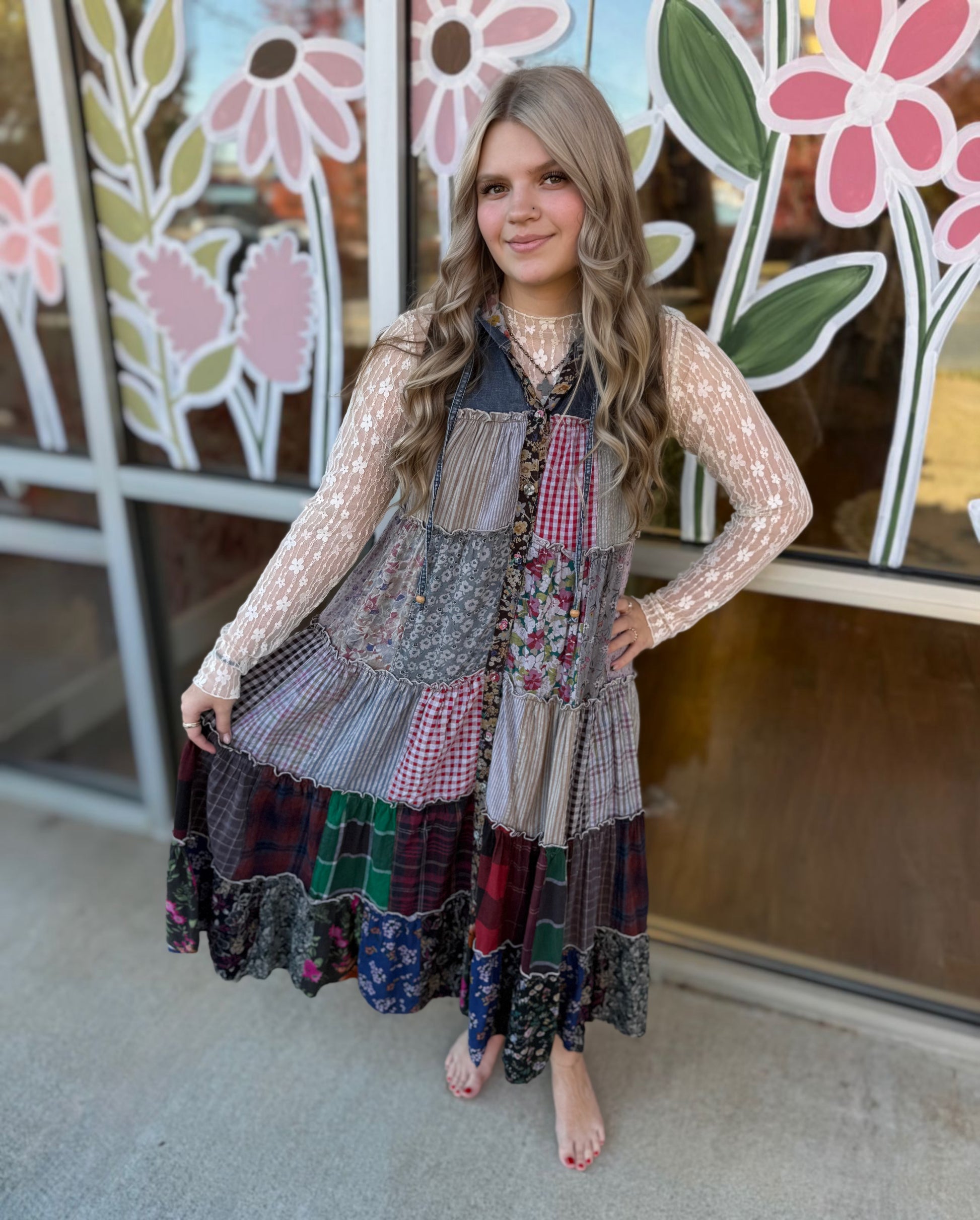 • Embroidery: None, focusing on a patchwork design